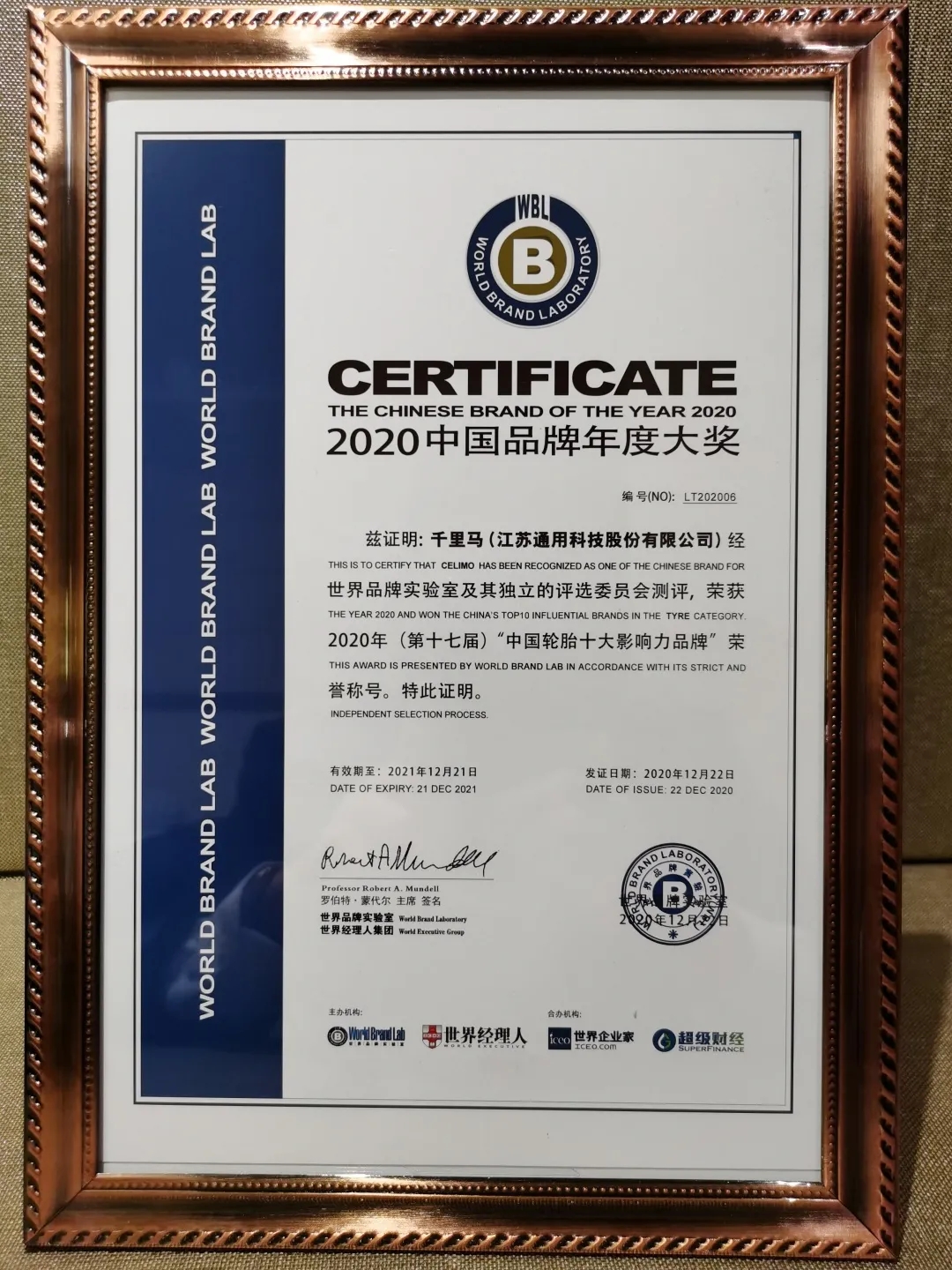 12月22日,由世界品牌實(shí)驗(yàn)室主辦的2020中國(guó)品牌年度大獎(jiǎng)評(píng)選在北京隆重舉行,會(huì)上正式揭曉中國(guó)輪胎品牌榜。千里馬輪胎憑借強(qiáng)大的品牌