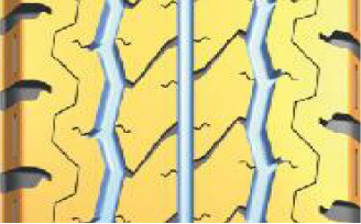 ·寬大的花紋塊設(shè)計(jì),配合曲折的花紋溝槽,擁有更好的抓地性能,行駛更加安全。